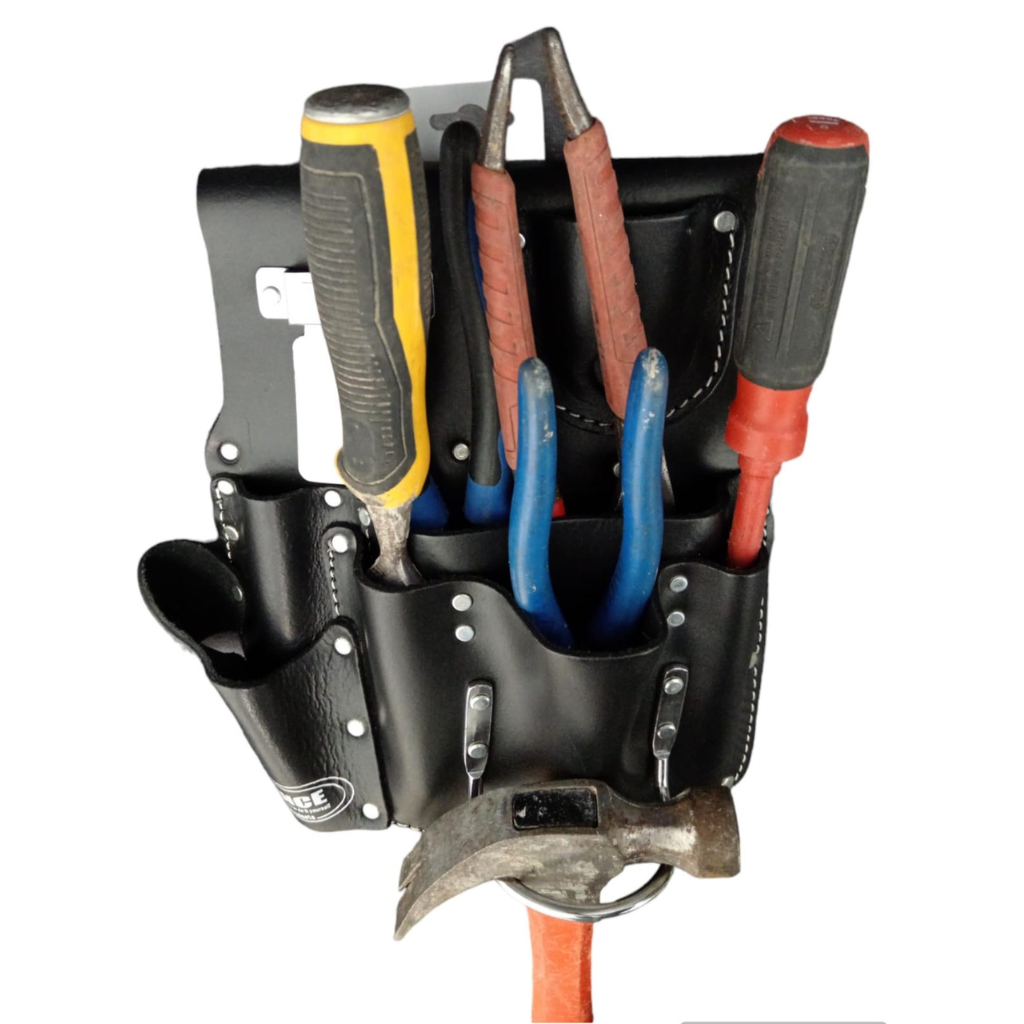 100% cuero, 7 bolsillos, soporte para martillo, soporte para metro, curtido con aceite, apto para herramientas